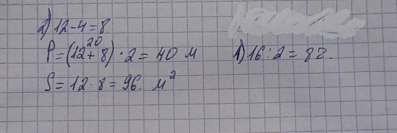 2) Длина бассейна 12 метров, а ширина на 4 метра меньше. Чему равны периметр и площадь этого бассейна
