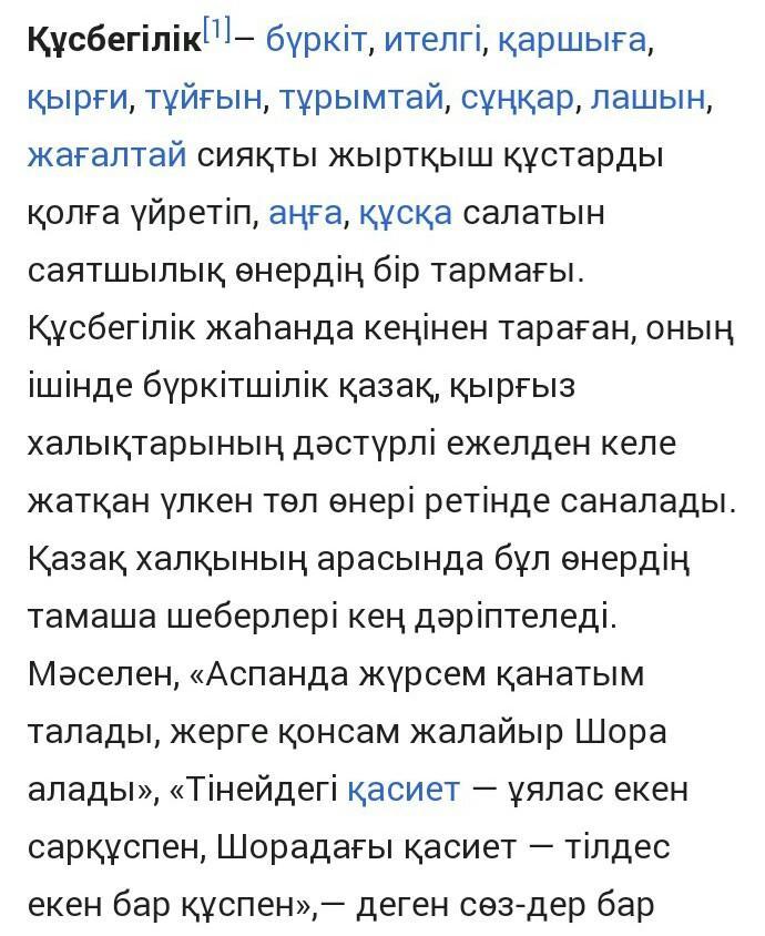 10-тапсырма. Дереккөздерден Қазақстандағы құсбегілік туралы мате-