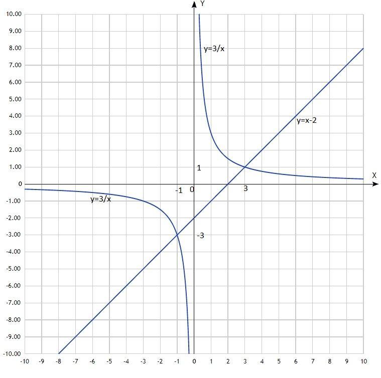 Координаты точек пересечения графиков: (-1; -3); (3; 1).