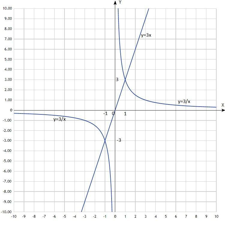 Координаты точек пересечения графиков: (-1; -3); (1; 3).
