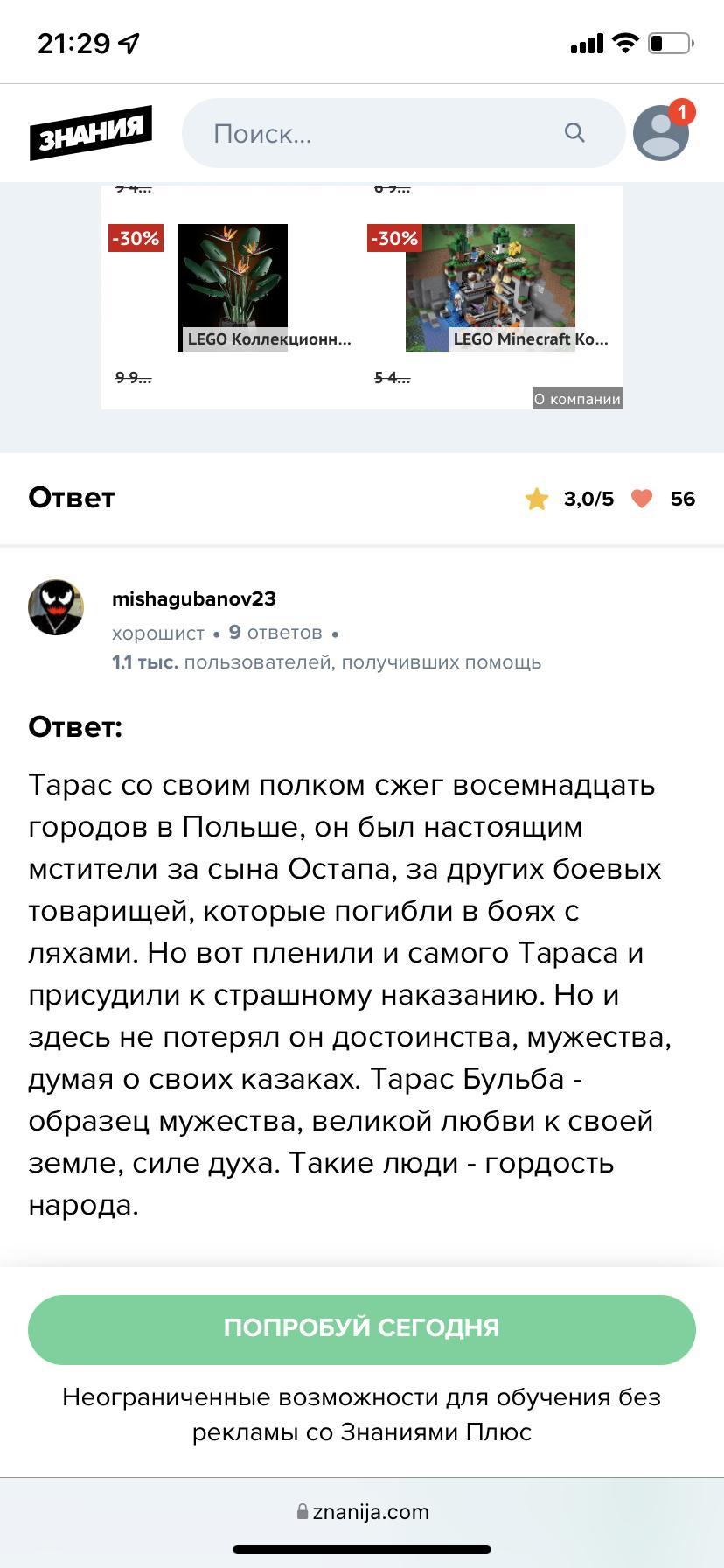 Темы сочинений по повести Н. В. Гоголя «Тарас Бульба» с опорными вопросами.