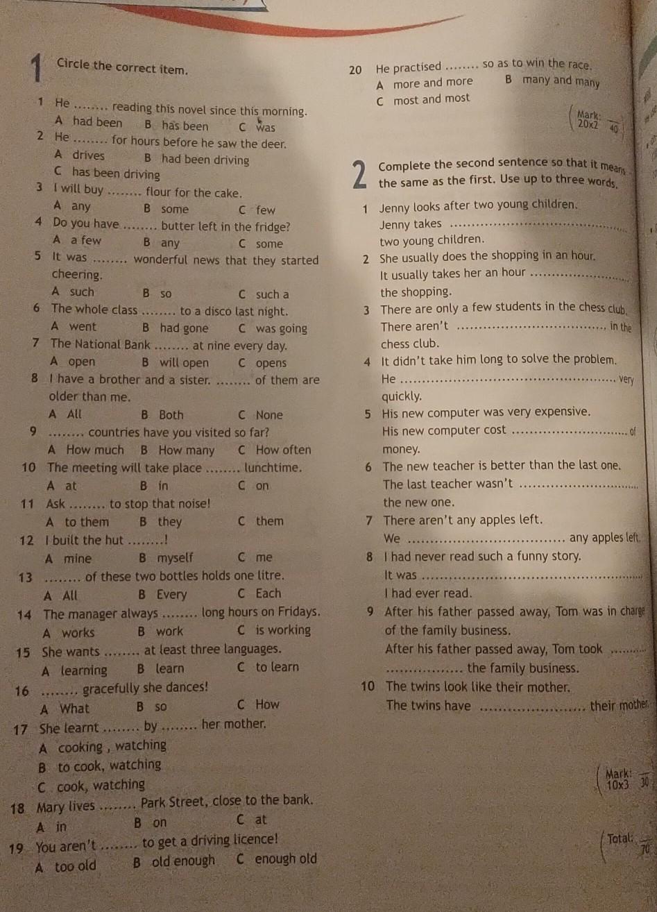 2) 1- takes care of two young children. 2- to do 3- many students 4- solved the problem 5- a lot 6- as good as 7- don't have 8- the funniest story 9- over 10- the same appearance as ( не уверена)