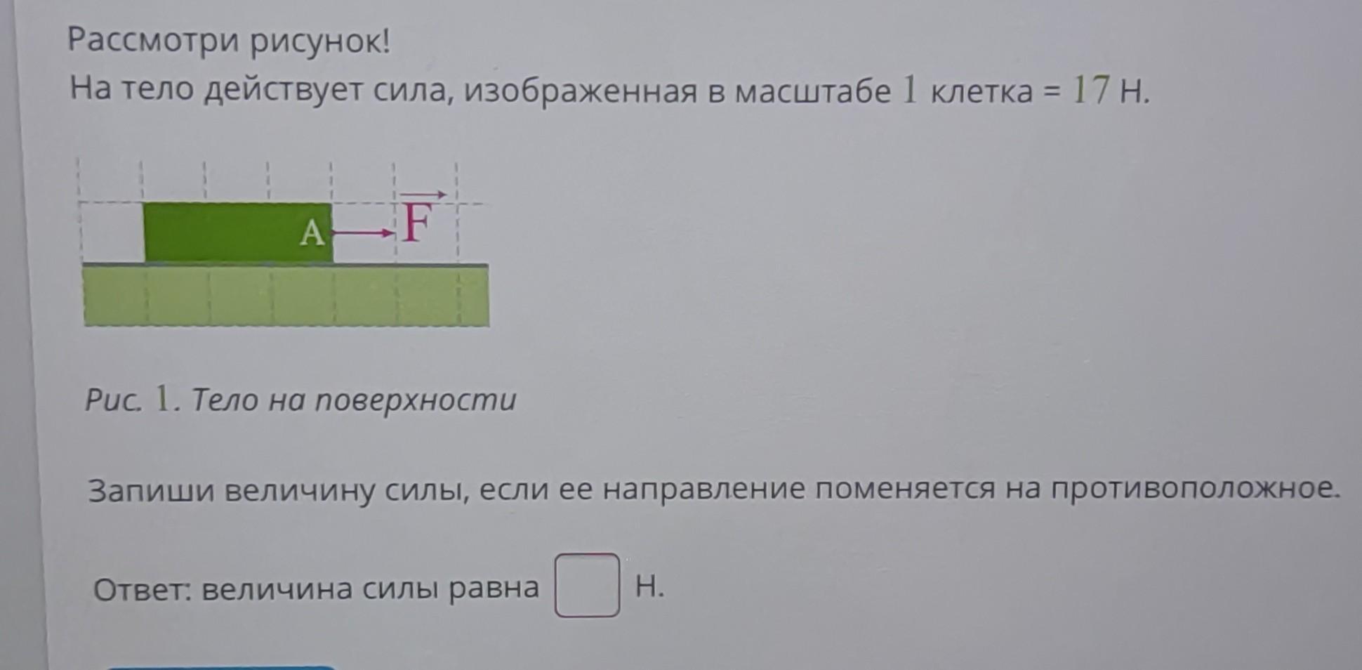 На тело действует сила, изображённая в масштабе 1 клетка = 17 Н