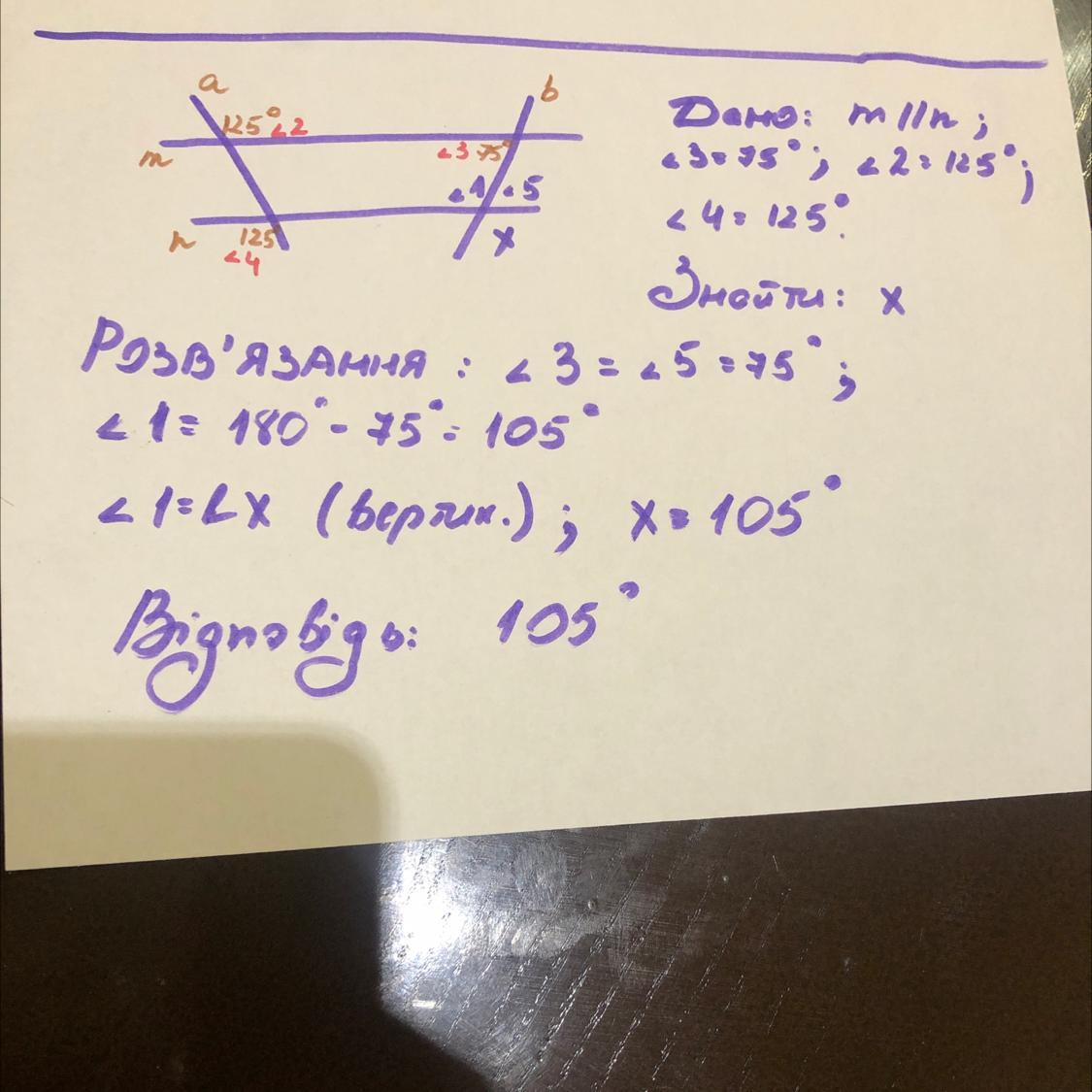 1) кут 6( той що під кутом який має 75°)+кут 4(75°)=180° як внутрішні односторонні кути при m//n