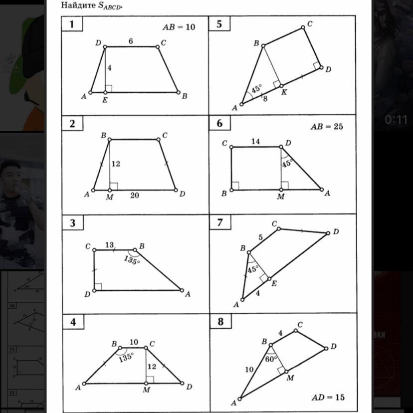 помогите решить, найти площадь трапеций! программа 8 класса, без синусов и косинусов