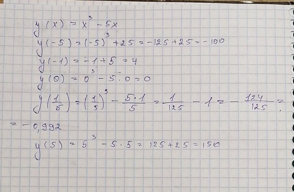 Самому важко зробити розрахунки? у(0)=0³-5×0=0 й тд