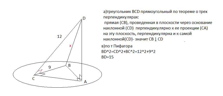Через вершину А прямоугольного треугольника АВС с прямым углом С проведена прямая АD, перпендикулярная к плоскости треугольника. А)докажите, что треугольник CBD прямоугольный.