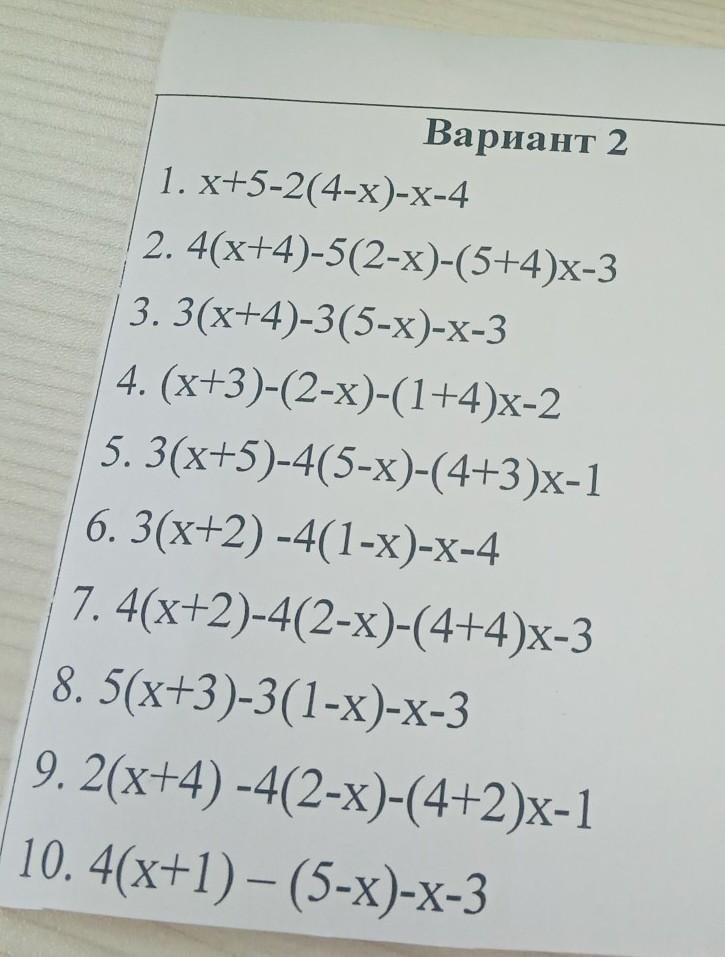 10) = 4x + 4 - 5 + x - x - 3 = 4x - 4