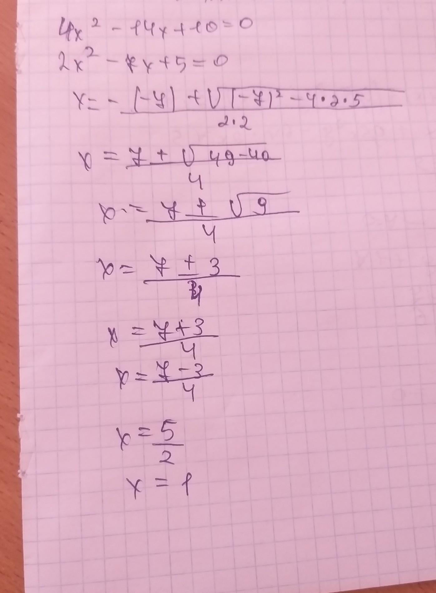 2. Определите, сколько корней имеет каждое уравнение, и найдите корни, если они существуют. a) 4x2 - 14x + 10 = 0 б) 2x2 - 24x + 22= 0