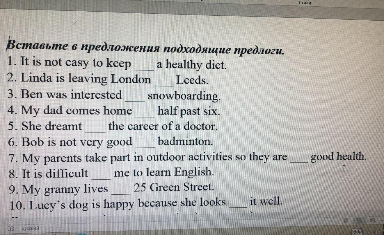 1) in 2) at 3)in 4)at 5) about 6) at 7) in 8) to 9)on 10)in