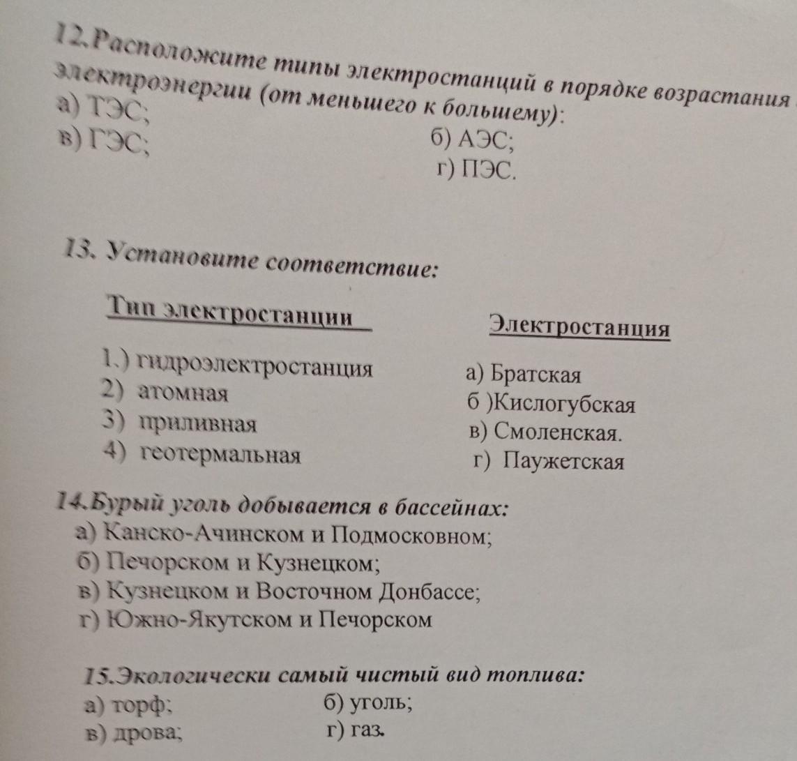 1)ПЭС, АЭС, ГЭС, ТЭС
