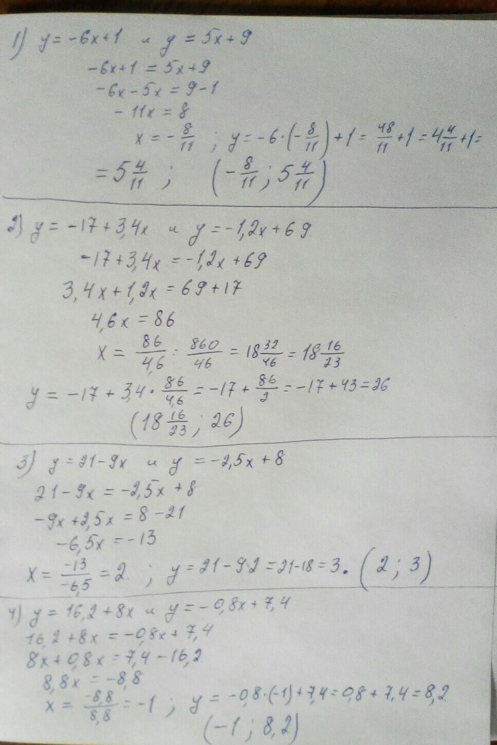 Помогите пожалуйста, нужно приравнять правые части функции и найти координаты точек пересечения графиков функций