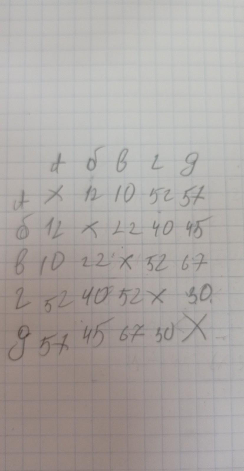 Записываем это расстояние в таблицу на пересечение строки В и столбца А и на пересечение столбца В и строки А
