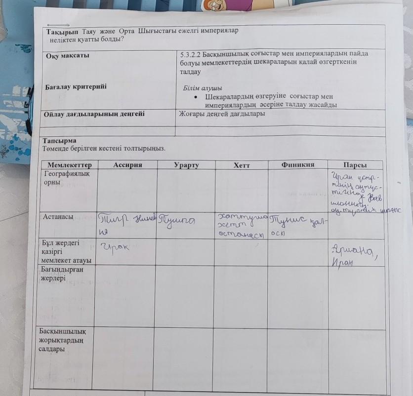 Ассирия: гео. орны онтүстік-батыс азия Астанасы: ашура, Бұл .жердегі қ. мемл.: Ирак, бағындарған жерлері: көршілес жерлер, шаруашылығы:астык т.б