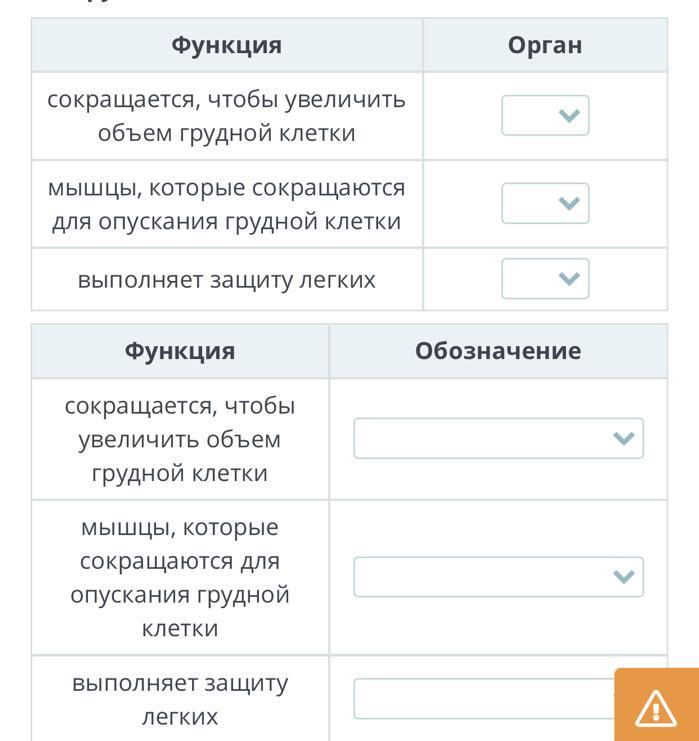 Заполни таблицу, соотнеся орган с функцией, которую он выполняет.
