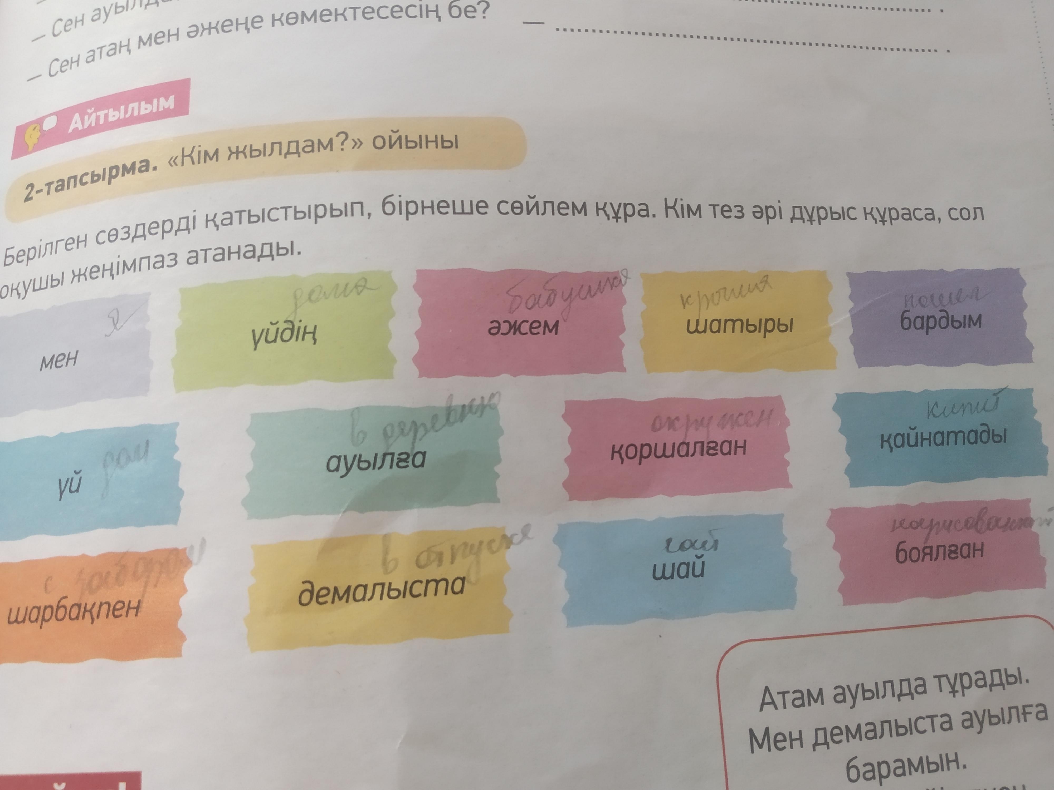 Мен демалыста ауылга ажемнин уйне бардым Жане ажем шай кайнатады шай иштик содан сон шарбак сыпырдык