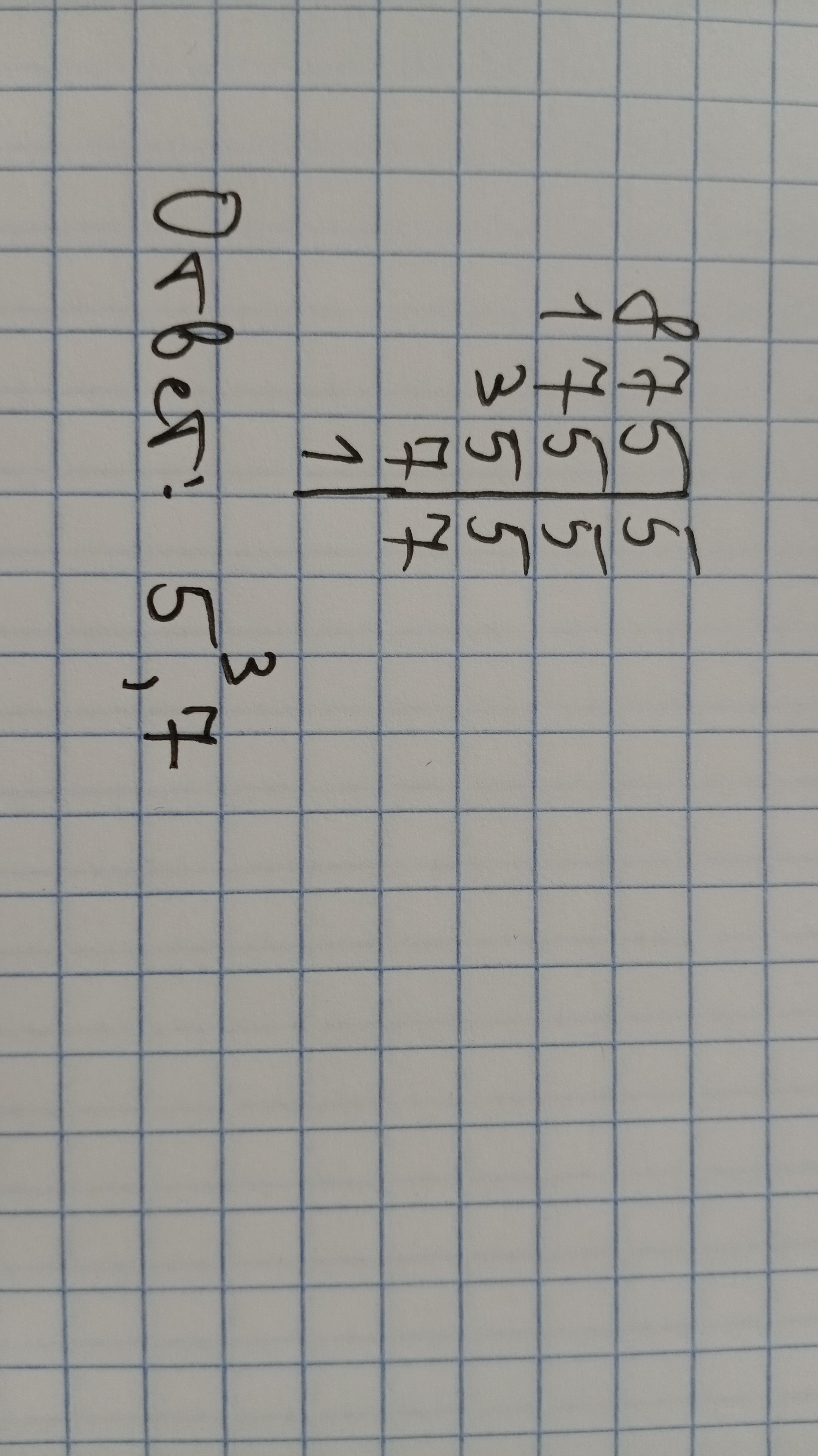 Разложи число 875 на простые множители (запиши множители в порядке возрастания, одинаковые множители записывай в виде степени).