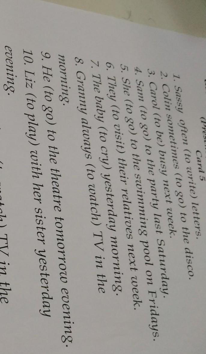 9. He will go to the theatre tomorrow evening (или is going to the theatre)
