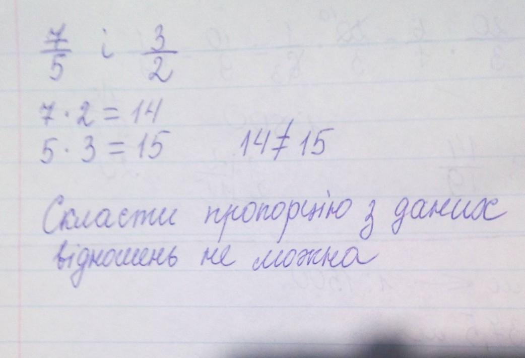 перевір користуючись основною властивості пропорції чи можна відношень 7/5 і 3/2 скласти пропорцію