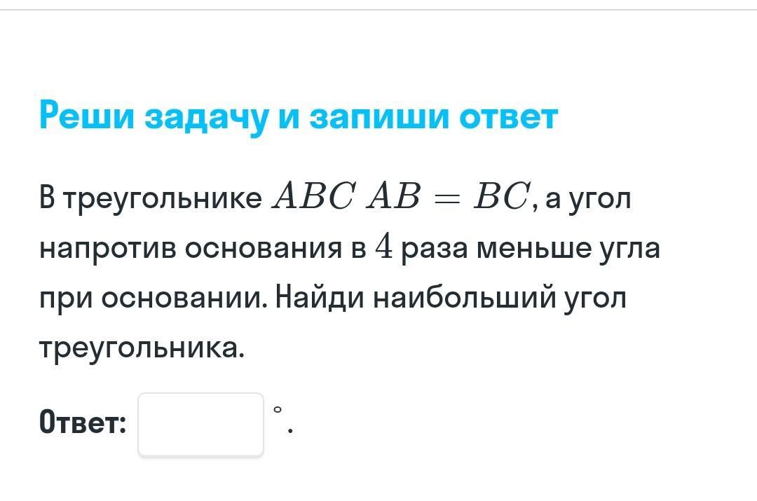 ∠А=∠С=4х ∠В=х сумма углов в треугольнике=180°