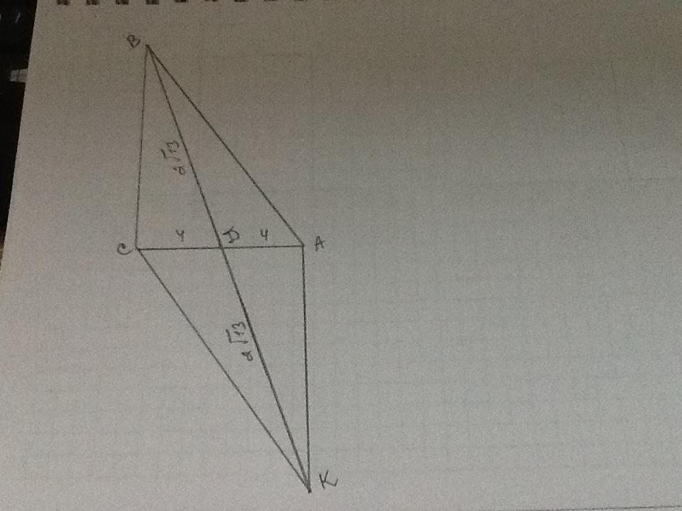 Продлеваем медиану на такую же длину и строим параллелограмм АВСК, где диагональ АС=8 см, диагональ ВК=2√13+2√13=4√13 см.