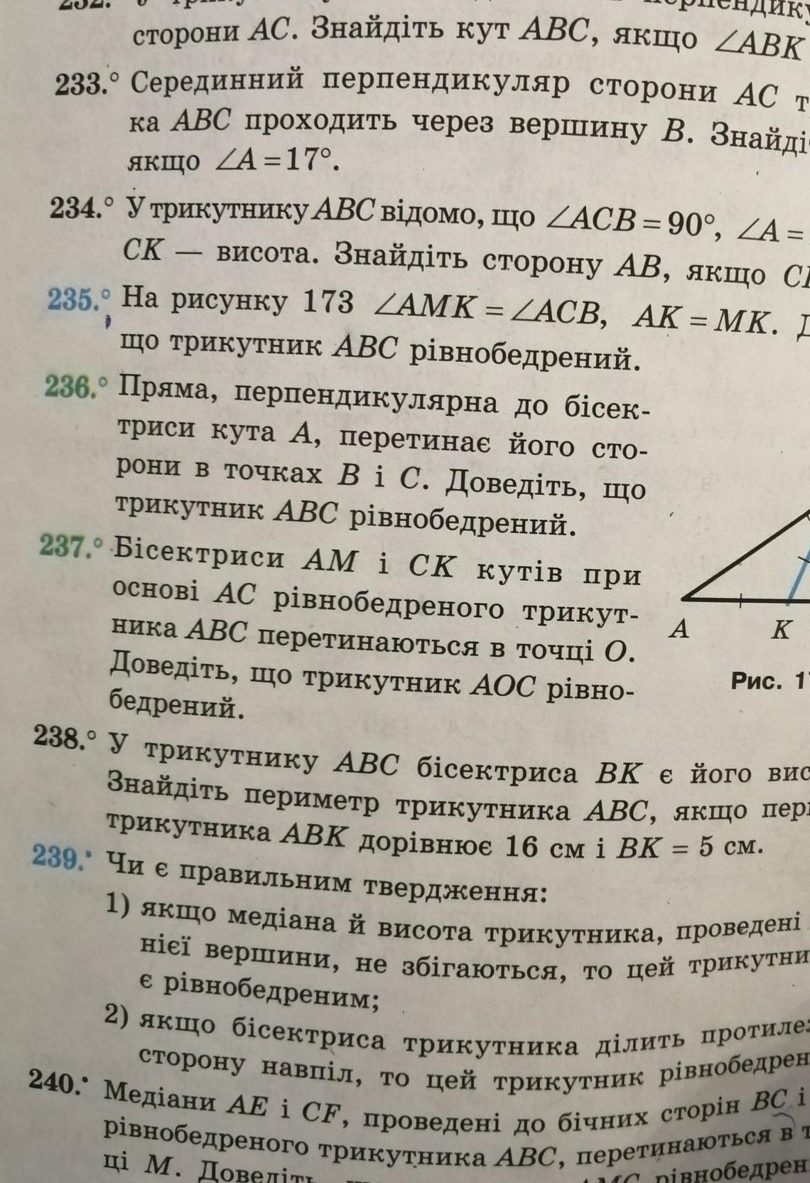 Геометрія. Вправа 237 на фото. 7 клас. Допоможіть будь ласка. Прохання написати все такого типу :