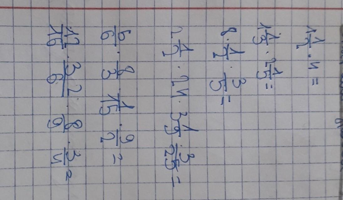 3) 8 * 1/2 * 3/5 = (8 * 1 * 3)/(2 * 5) = 24/10 = 2,4;