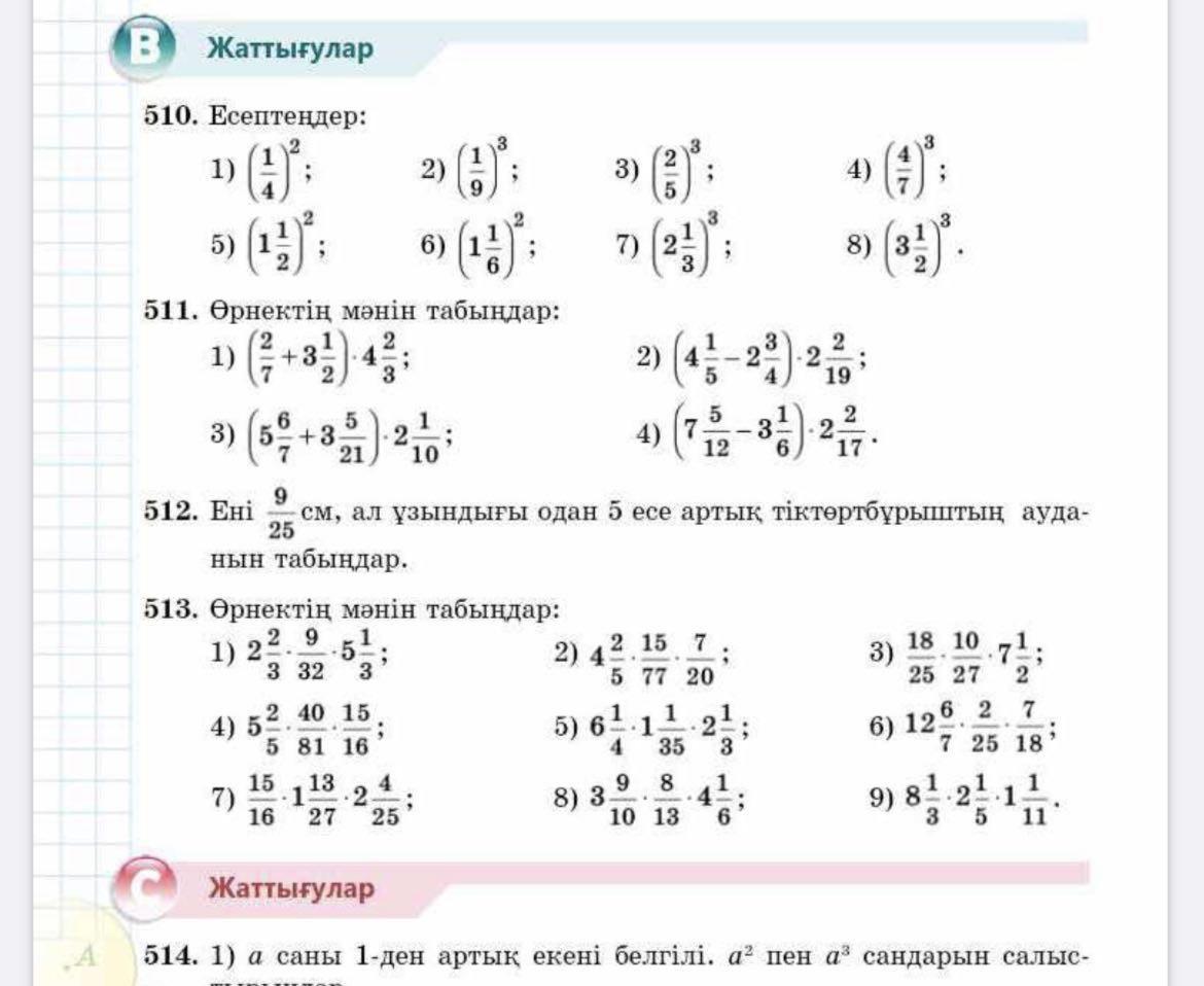 512. Найдите площадь прямоугольника шириной 9/25 см и в 5 раз длиннее.