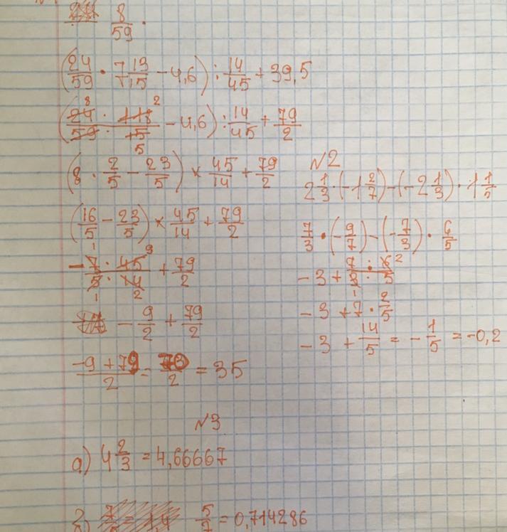 Ответ: (24/59* 118/15-46/10): 14/45+79/2= (24*118/59*15 - 23/5): 14/45+79/2= 16/5:14/45+79/2= 16/5*45/14+79/2= 16*45/5*14 + 79/2=72/7+79/2=144/14+553/14=144+553/14= 697/14 = 49 11/14