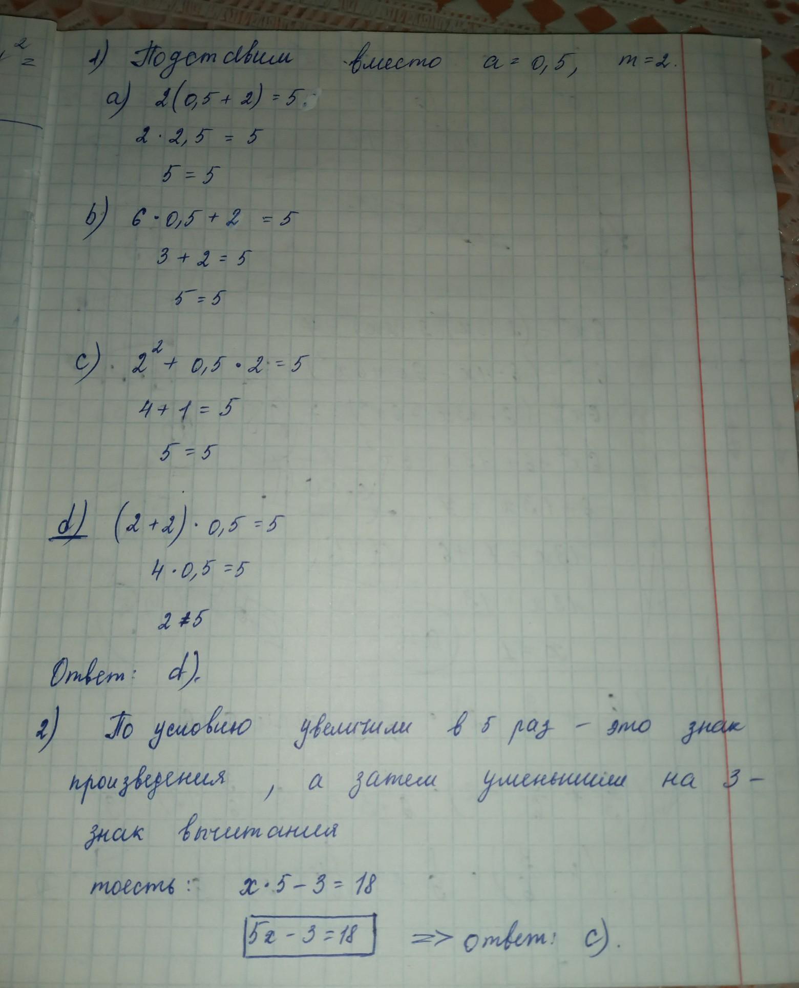 Значение какого выражения не равно 5 при a=0,5,m=2?