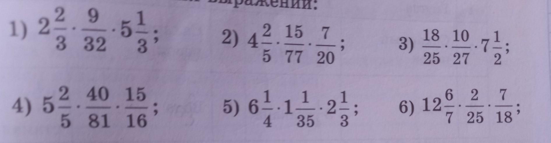 Найдите значения выражений: 2 9 1 5 7 3 32 3 1) 2 2 15 7 2) 44 5 77 20 18 10 3) 25 27 т 2 2 7 2 40 15 4) 5 5 81 16 5) 61.1 1, 2, - 6) 126 4 35 3 7 25 18 7) . 15 13 - 1 16 27 4. 2 25 ; 8) 3 9 8 1 4 10 13 1 9) 81.21.11 6 3 5 11