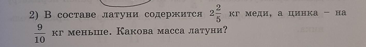 12/5+3/2=24/10+15/10=39/10=3 9/10 кг масса латуни