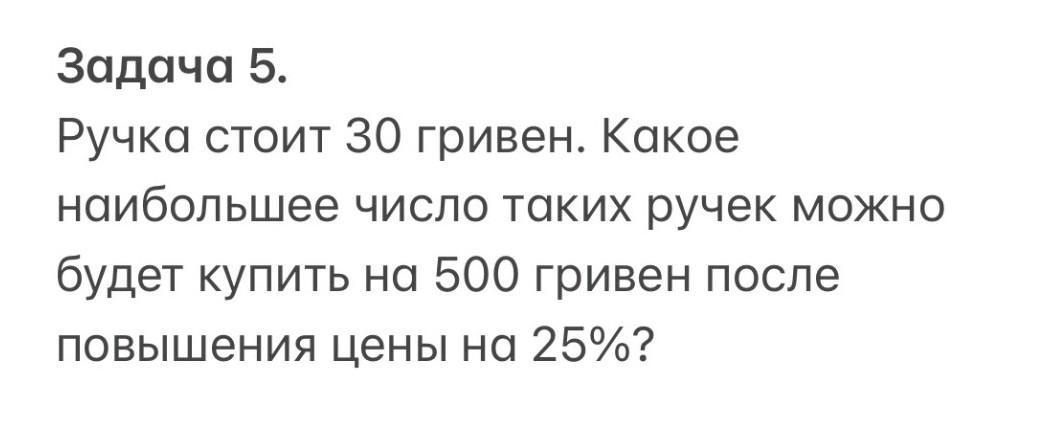 Ответ:13 ручек можно купить на 500 гривен после повышения цены на 25%