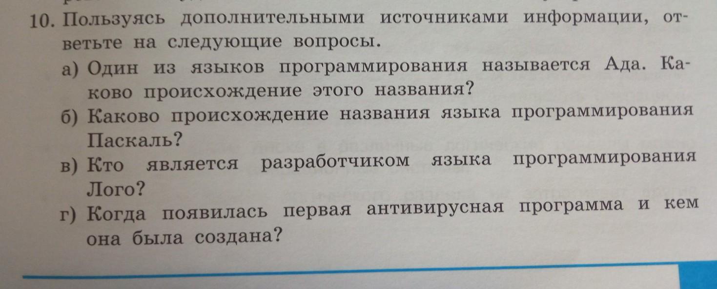 а) Язык программирования Ада - разработала группа под руководством француза Жана Ишбиа и дала языку название в честь Огасты Ады Кинг Лавлейс (1815—1852), дочери поэта Дж. Байрона