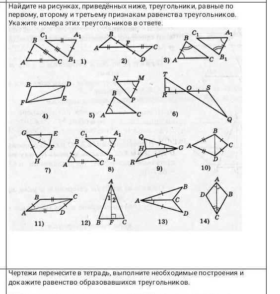 Ответ: 1) первый признак ;2) первый признак;3) второй признак;7) первый признак;11) третий признак;13) первый признак;14) второй признак
