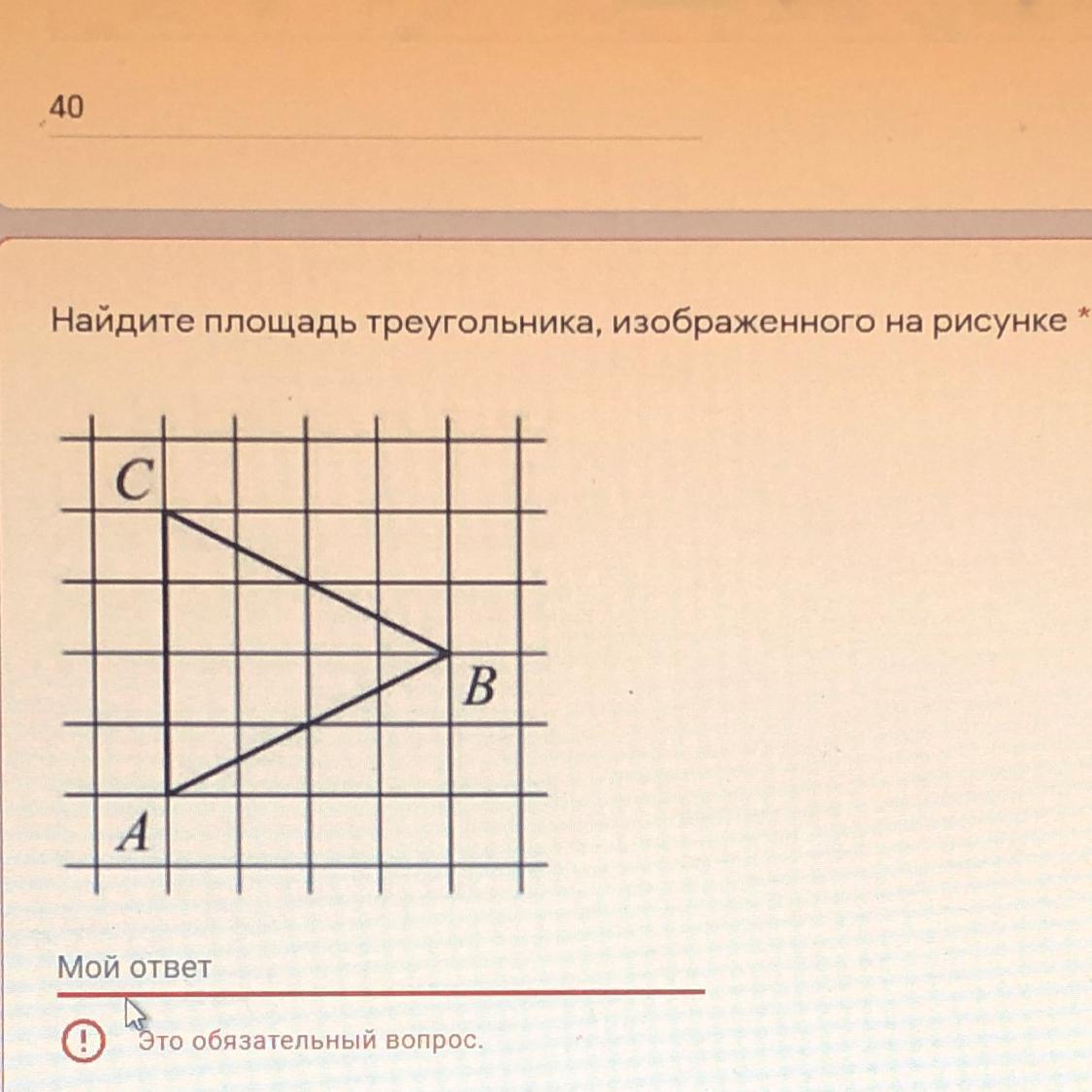 второй способ. по формуле. приняв АС за основание, а перпендикуляр, опущенный из вершины В, за высоту, получим АС=4, высота =4, площадь равна половине произведения основания на высоту, т.е. 4*4/2=8/кв. ед./