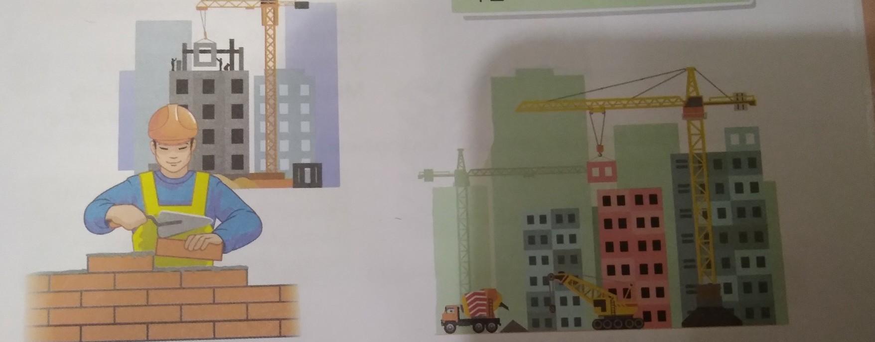 •Чья работа на стройке всем видна? •Кто строит садики и школы для ребят? •Назови профессии этих людей и запиши их в тетрадь.