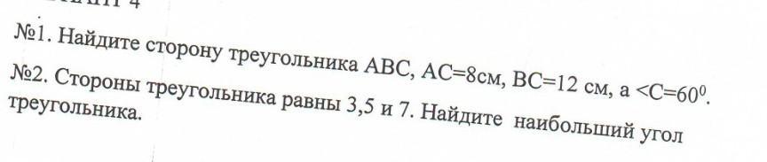 1) ВС^2=АВ^2+АС^2-2*АВ*АС*cos60градусов. ВС^2=12^2+8^2-2*12*8*0,5= 208-96=112