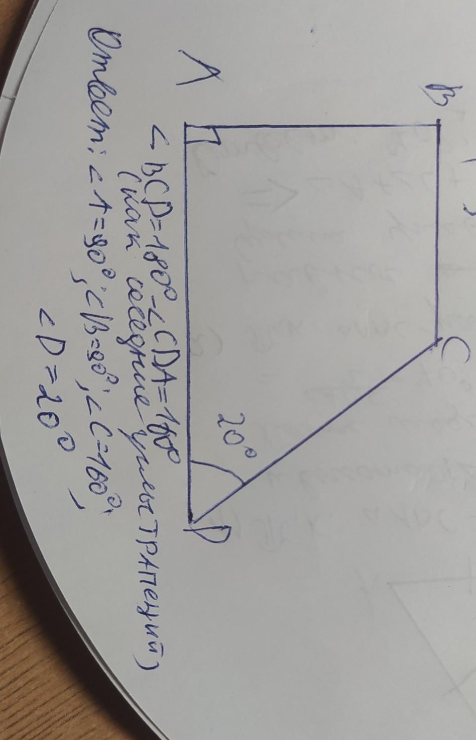∠В = 180° - ∠А = 180° - 20° = 160°