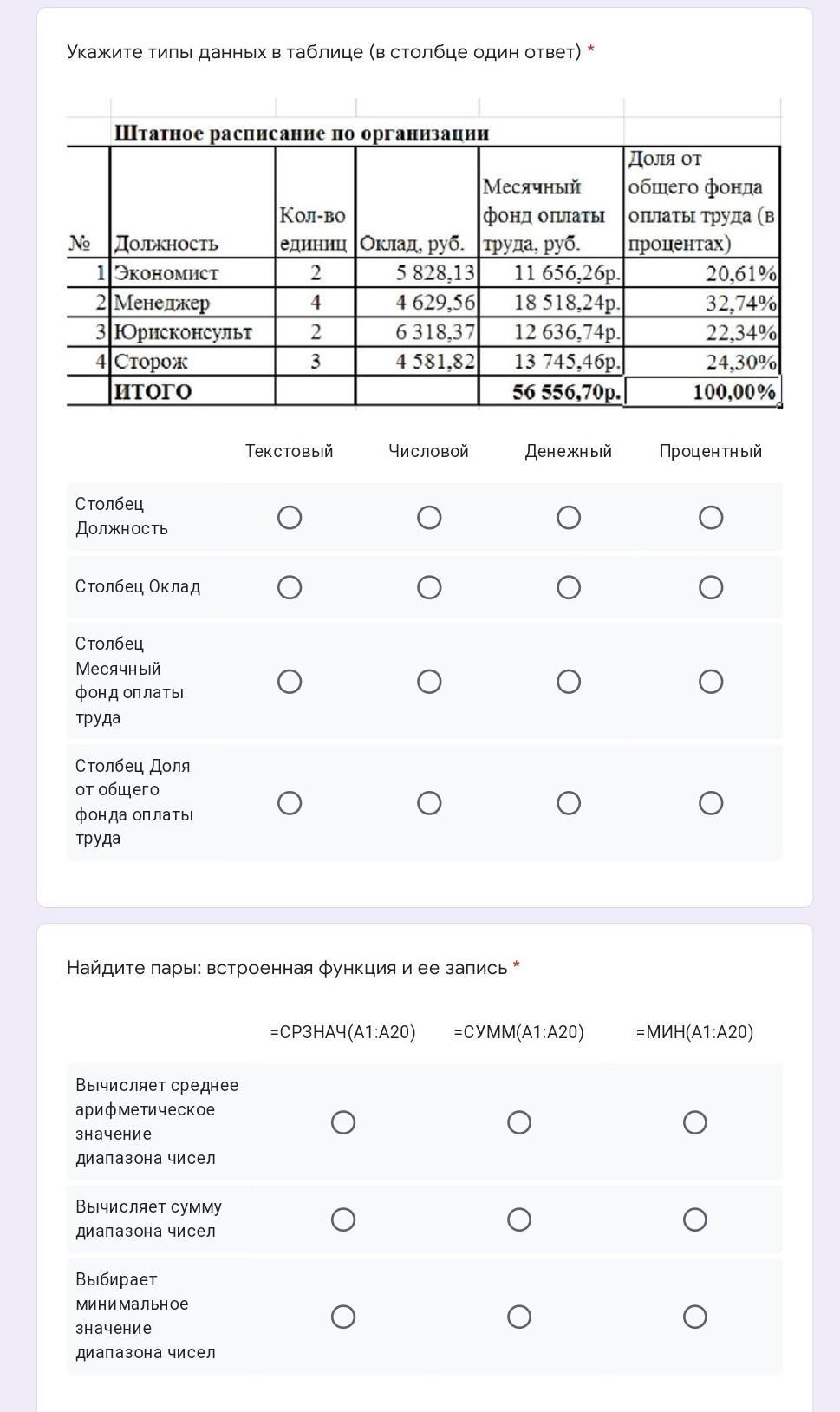 Столбец должность: текстовой