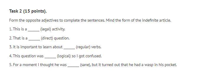 Form the opposite adjectives to complete the sentences. Mind the form of the indefinite article.
