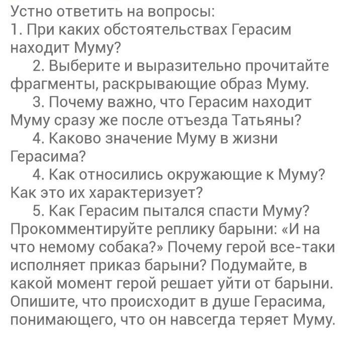 надо на все вопросы ответить 5класс по произведению"Муму"