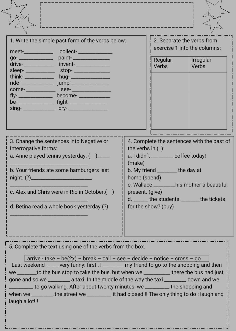 Was, noticed, went, arrived, called, broke, decided, took, crossed, saw