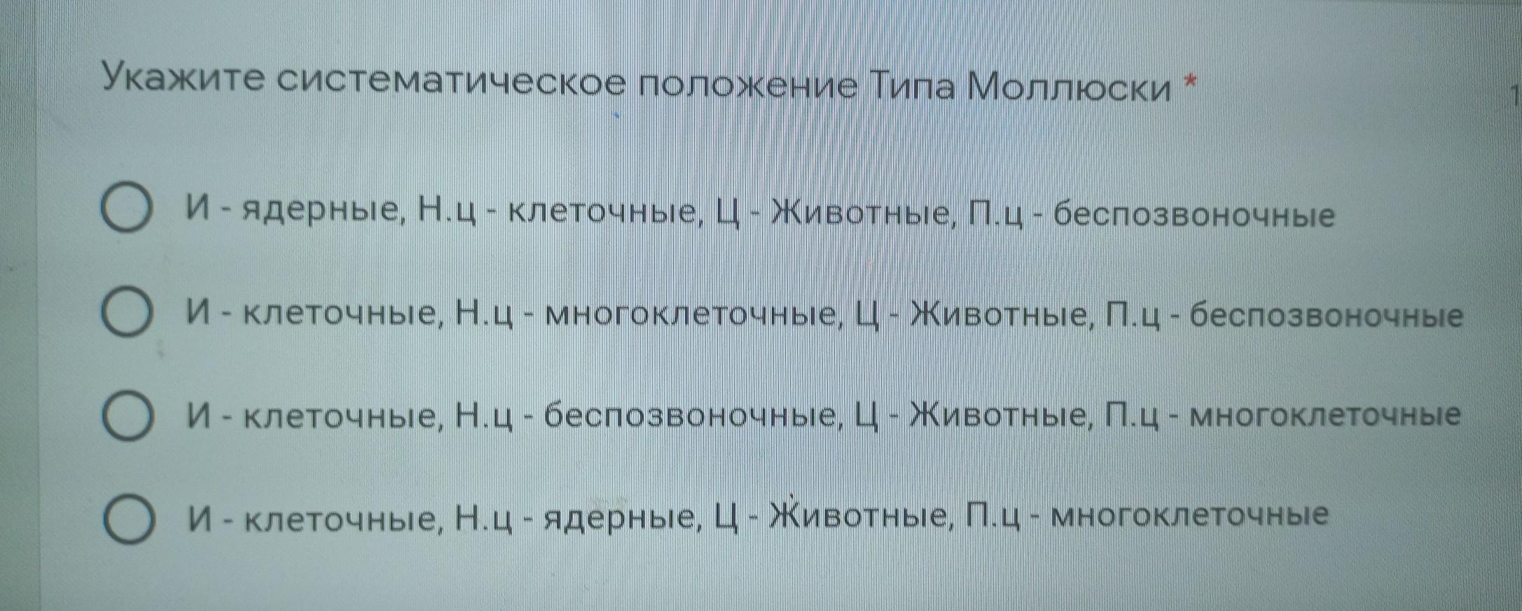 И-клеточные, Н.ц- ядерные, Ц- животные, П.ц- многоклеточные