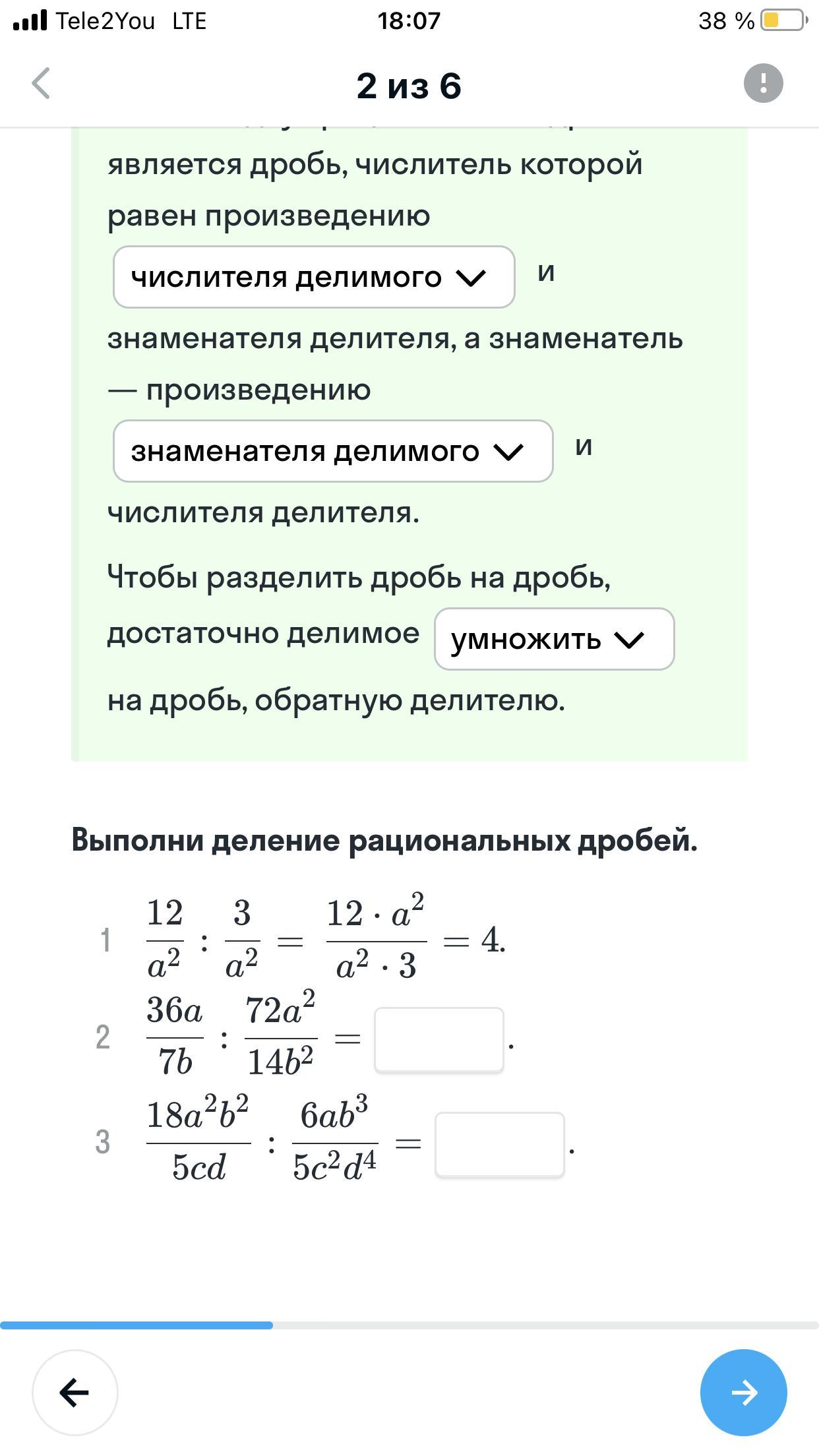2)(36a/7b)/(72a^2/14b^2)=(36a/7b)*(14b^2/72a^2)=2b/2a=b/a