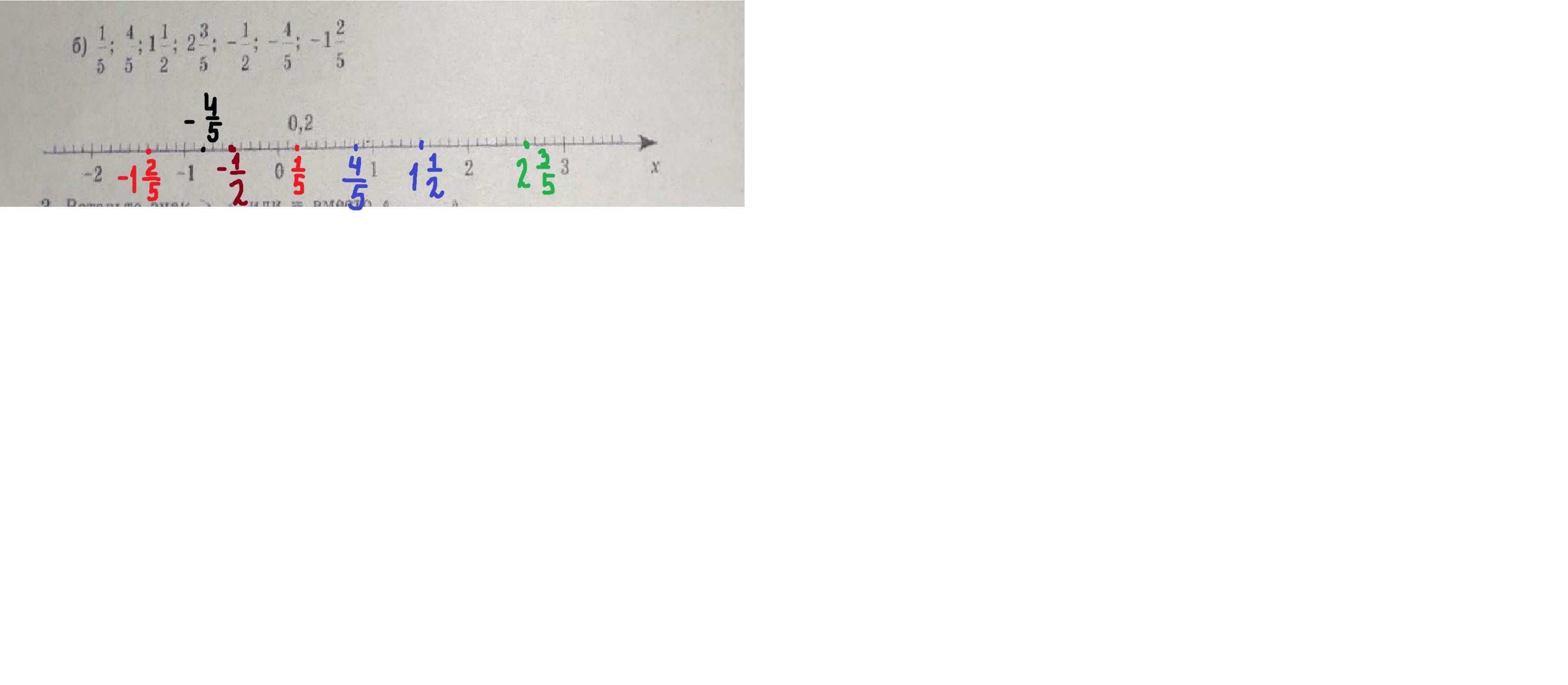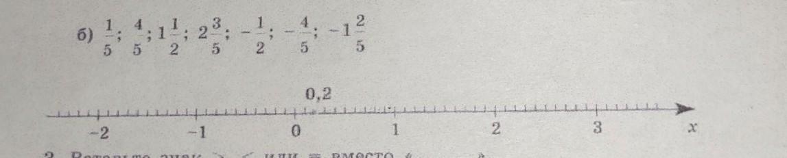 2. На координатной прямой отметьте числа. б) 1/5; 4/5; 1 1/2; 2 3/5; -1/2; -4/5; -1 2/5