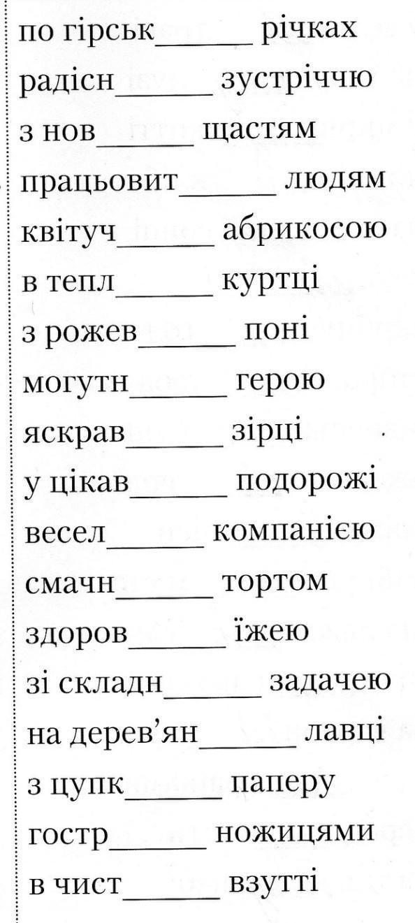 додати закінчення до прикметників обрати 5 словосполучень визначити відмінок,