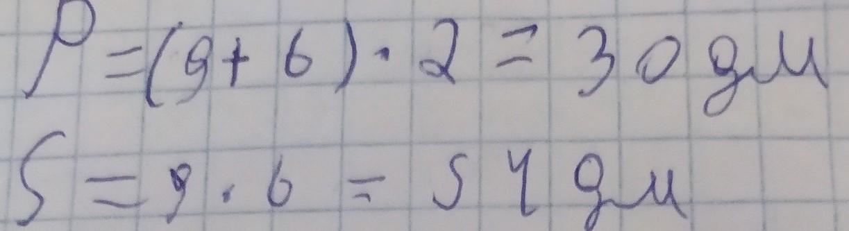 Длина прямоугольника 6 дм, а ширина 9 дм. Найдите его площадь и периметр