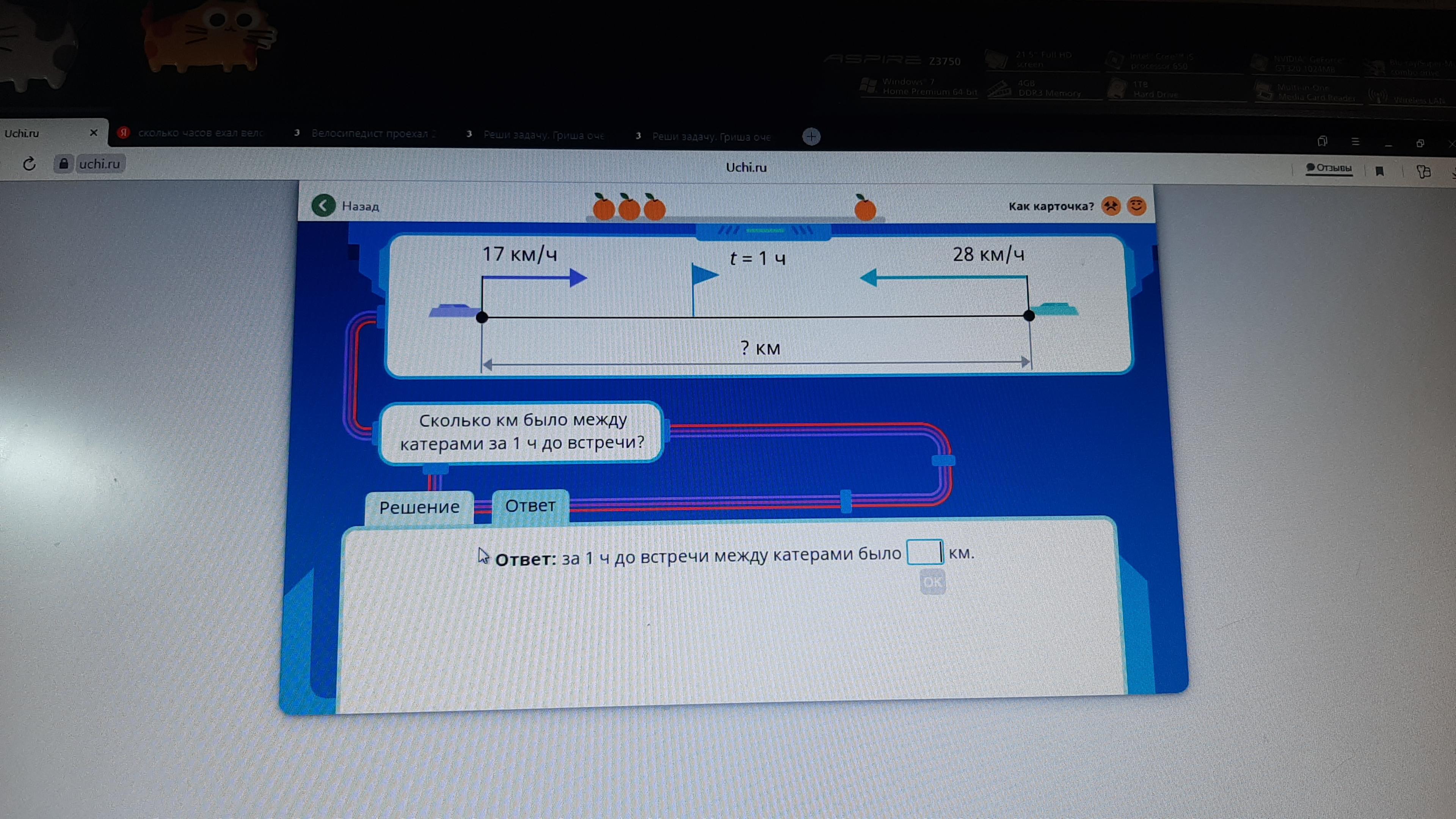2) 45*1= 45 (км) - было за 1 час до встречи (то есть изначально)