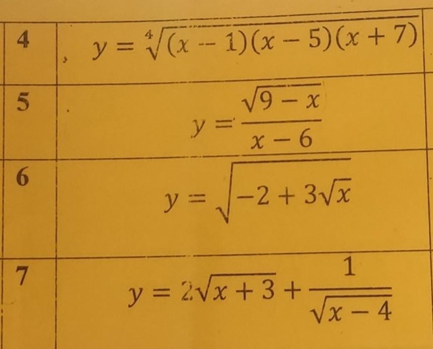 7) x = нет корней. y = нет корней. x принадлежит ( 4;+∞ )